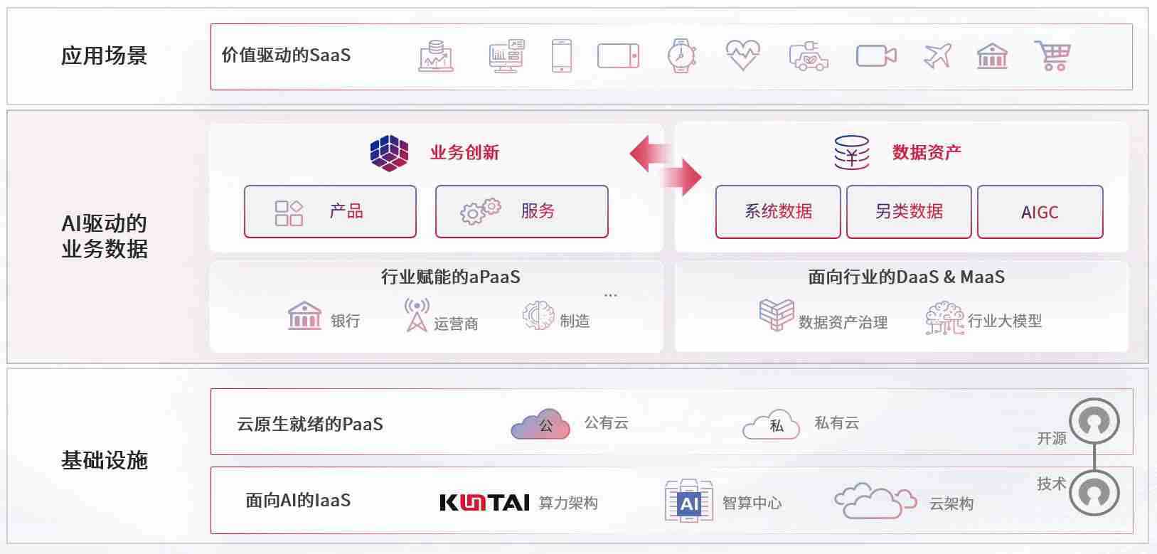 数字时代,,,,围绕企业数字化转型的关键要素,,,,Z6尊龙时凯数码开创性的提出数云融合战略和技术体系框架,,,着力在云原生、、、、数字原生、、、AI原生和信创产业上架构产品和服务能力,,为处在不同数字化转型阶段的快消零售、、、汽车、、金融、、、、医疗、、、政企、、、教育、、运营商等行业客户提供泛在的敏捷IT能力和融合的数据驱动能力,,,,构建跨界融合创新的数字业务场景和新业务模式,,助力企业级客户建立面向未来的核心能力和竞争优势,,,,全面推动社会的数字化、、、、智能化转型升级。。